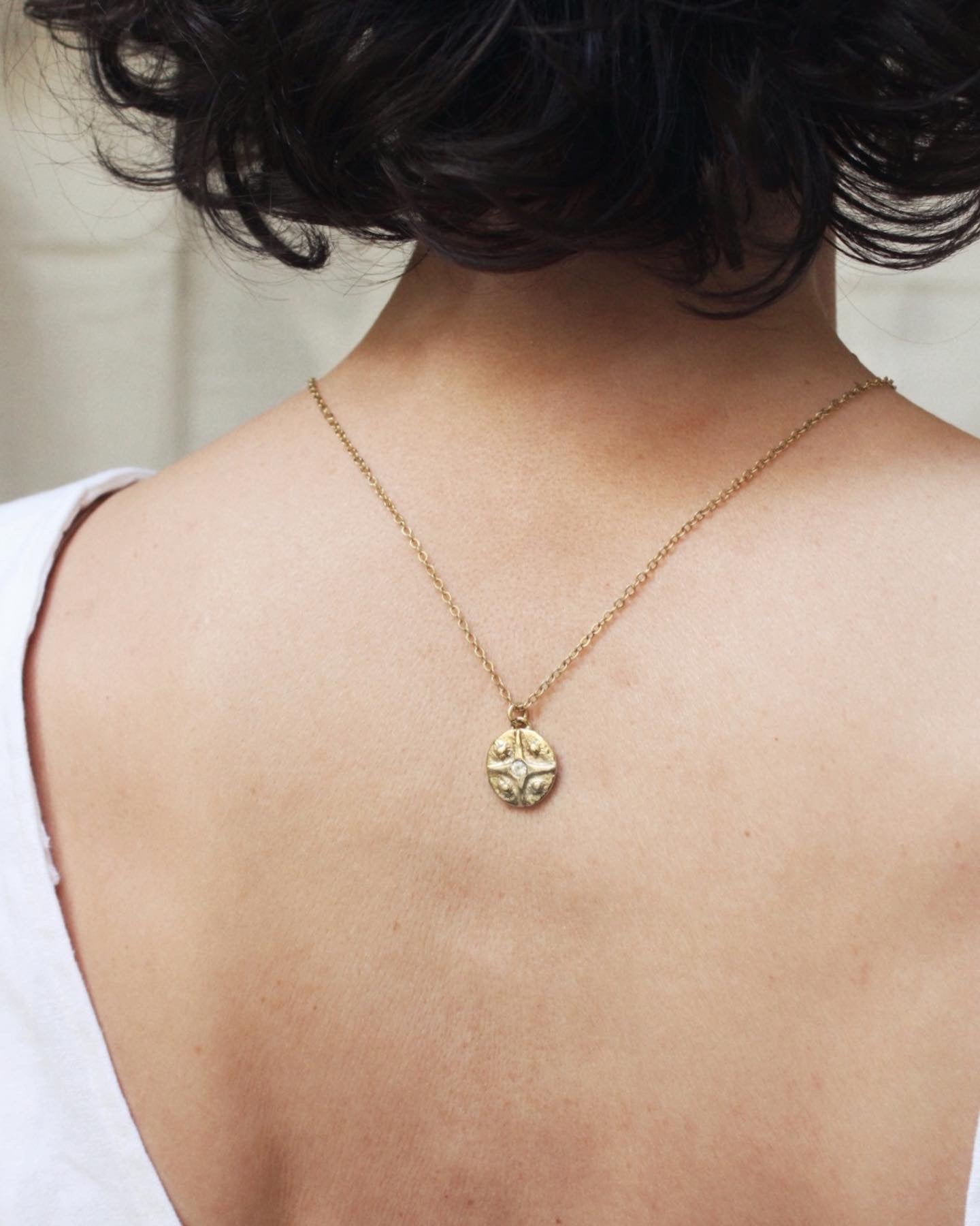 Ez az ékszer sárgarézből készült, választható 14K aranyozással és ezüstözve.