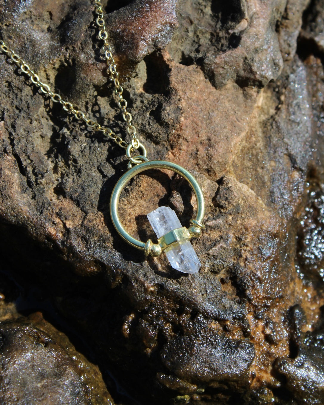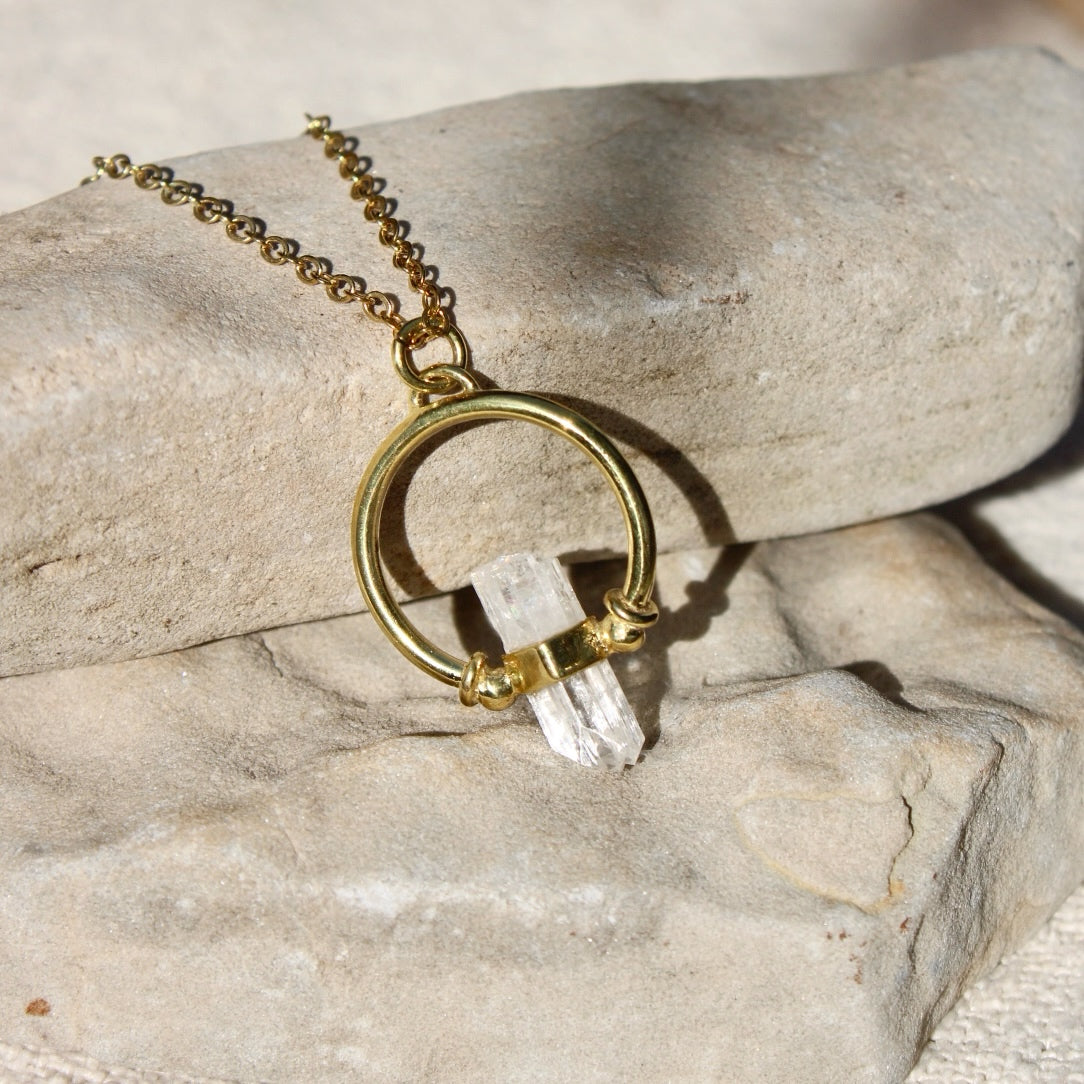 Az inspirációt egy ritka ásvány, a Danburit tette teljessé. Ez a kő tisztaságáról, erejéről és mélységéről ismert, amely rendkívül különlegessé teszi. Másfél évvel ezelőtt vásároltam ezt a kristályt, és már akkor tudtam, hogy egyszer egy számomra meghatározó ékszer központi eleme lesz.