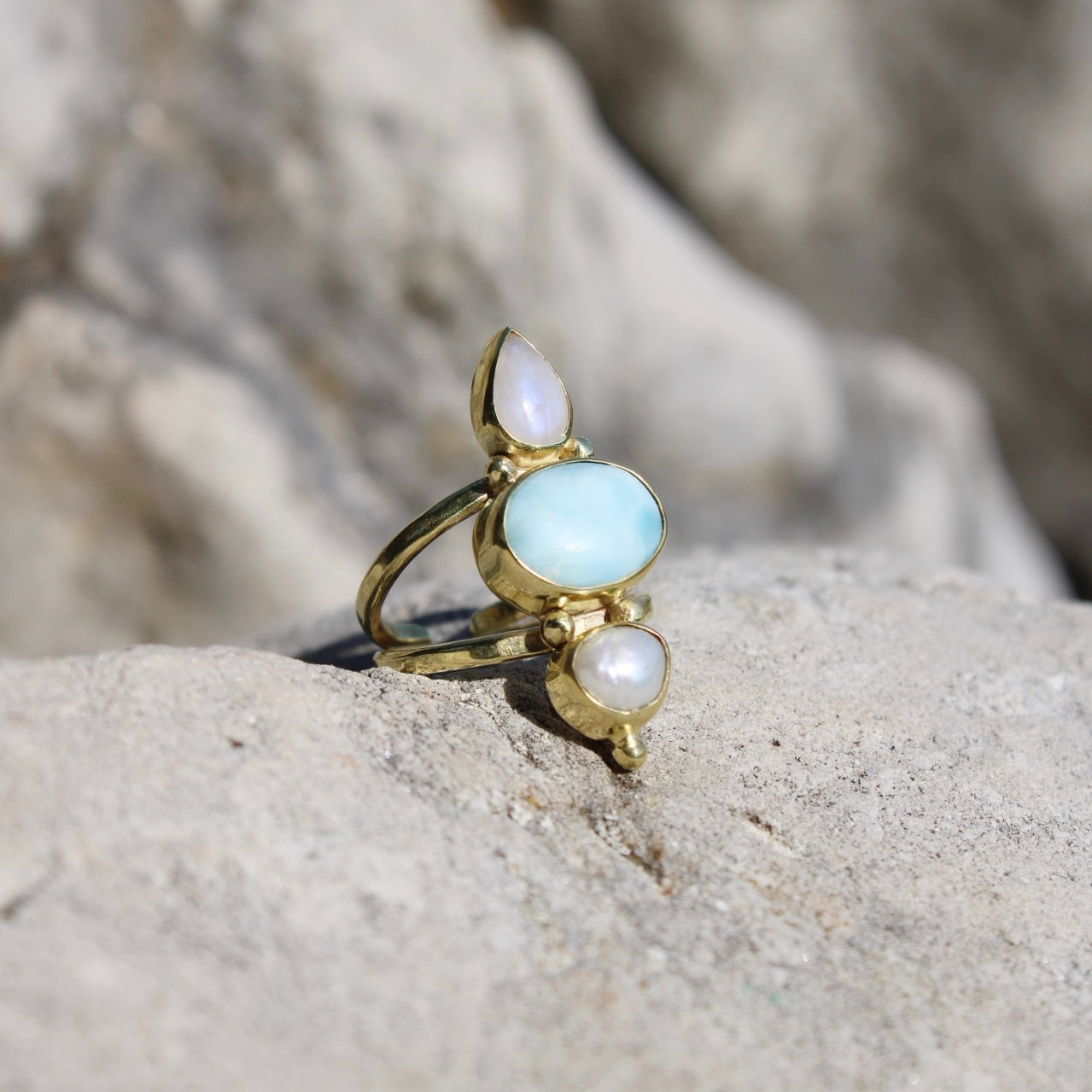 Mindhárom kő együtt a víz különböző arcait idézi: a tenger nyugalmát, a hold fényét és a mélység rejtett kincseit.