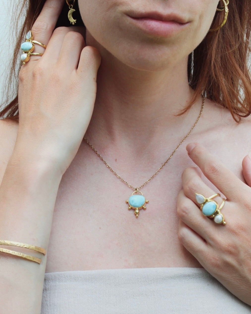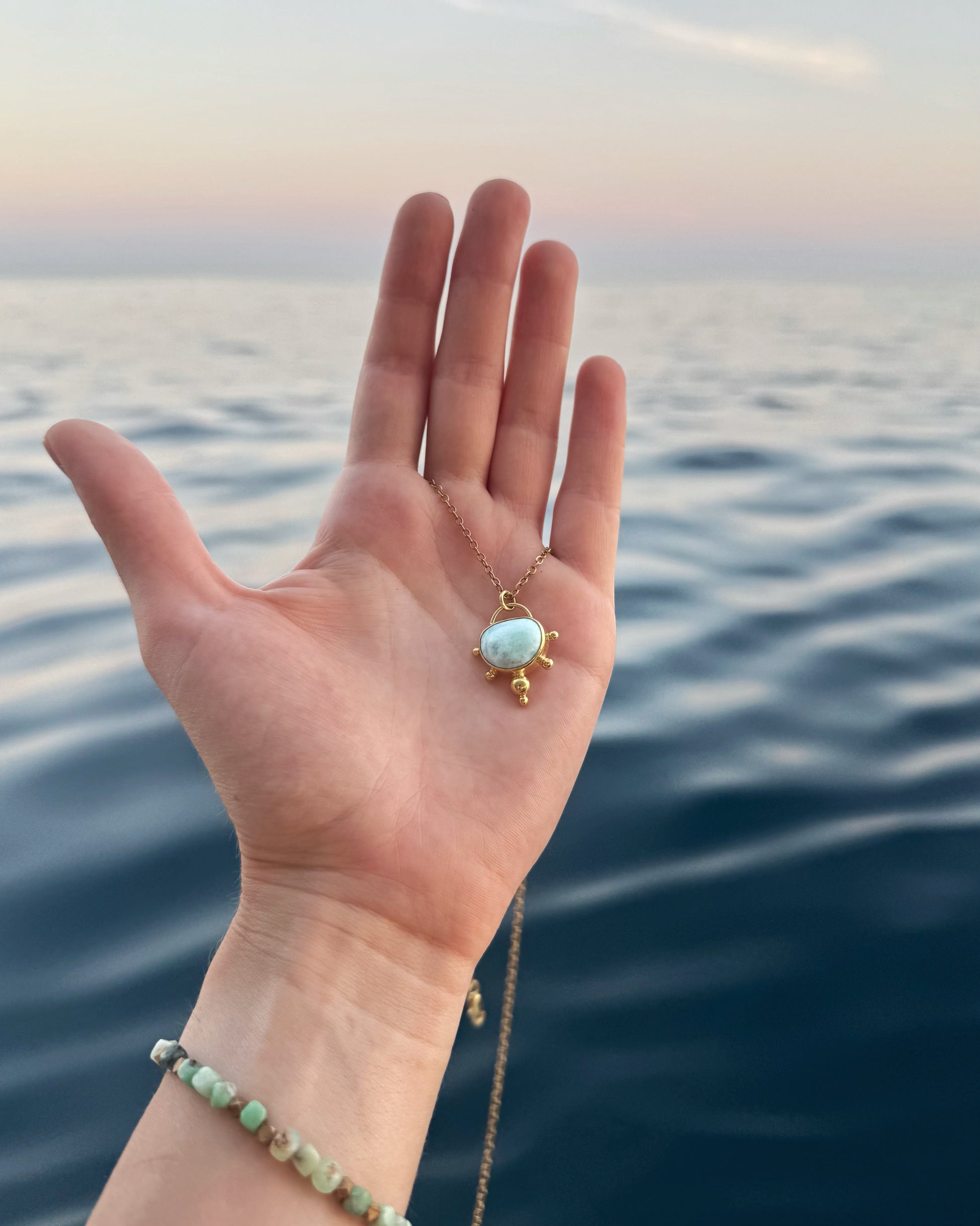 Az ékszer középpontjában egy Larimár foglal helyet, amely a világon egyedül csak a dominikai köztársaságban lelhető fel. A végtelen Óceán és a szabadság szimbóluma.