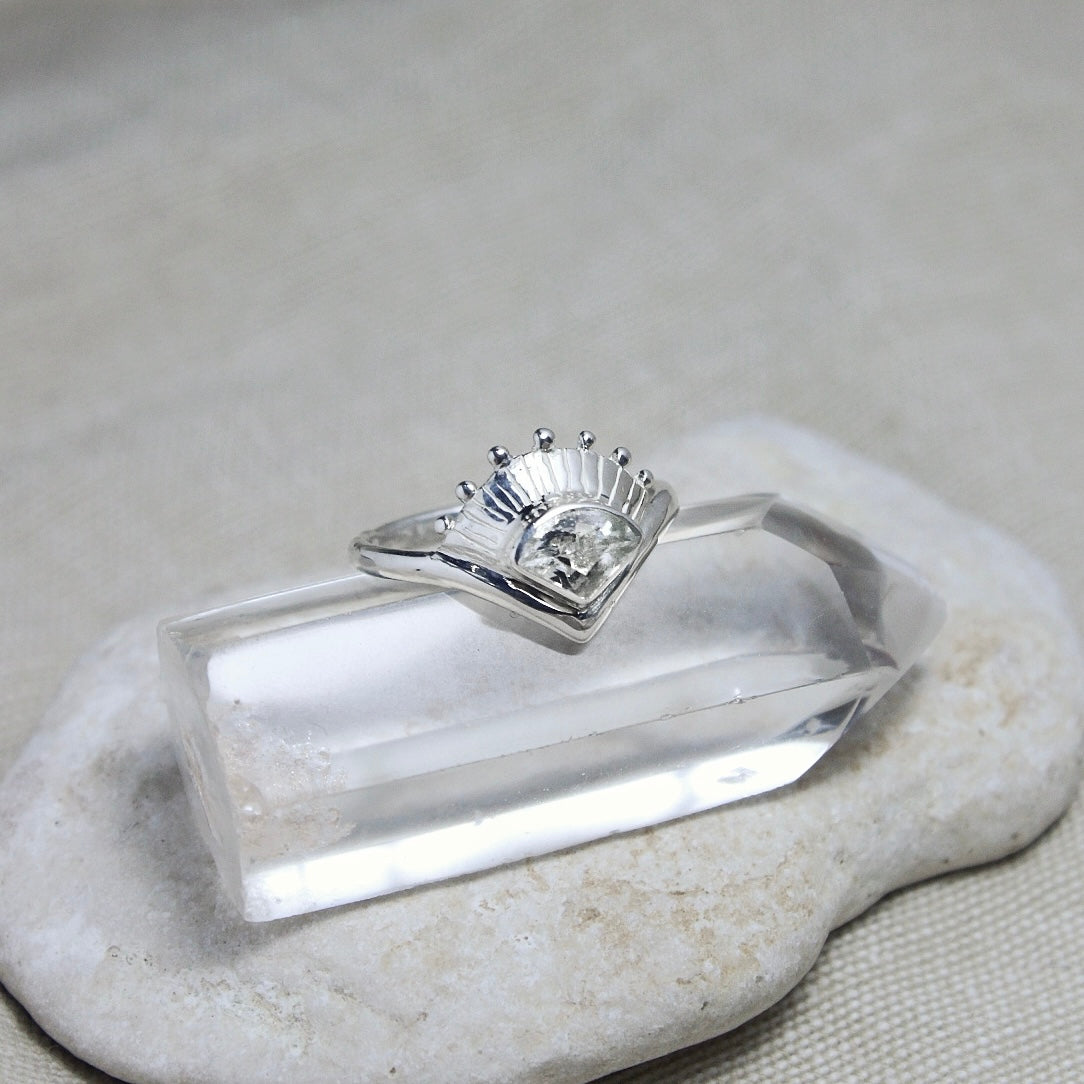 Az ékszer középpontjában egy különleges csiszolatú fazettált, fehér Topár foglal helyet. Légies, nőies darab azoknak, akik a finom részletekben találják meg a szépséget.
